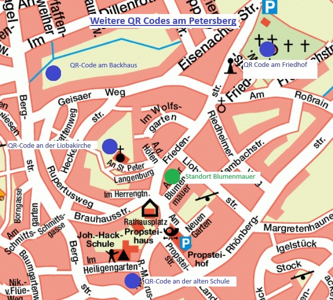 Der Propsteigarten ist eine parkähnliche Anlage mitten im Petersberger Ortskern, direkt unterhalb der St. Peter-Kirche (Grabeskirche der Heiligen Lioba). Der Eingang ist in der Straße „An der Blumenmauer“ zu finden.